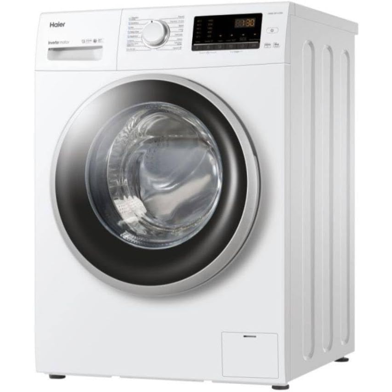 La lavadora de carga frontal Haier HW80-BP1439N-IB cuenta con una capacidad de 8 kg y una velocidad de centrifugado de 1400 rpm. Dispone de un motor inverter, lo que permite un funcionamiento más preciso y eficiente. Entre sus programas de lavado, incluye opciones como lavado rápido, lavado delicado y lavado de lana, adaptándose a diversas necesidades. Su panel de control permite ajustar el tiempo y la temperatura del ciclo seleccionado. Este modelo también integra la función de bloqueo infantil. La clasificación energética es A+++, lo que indica un bajo consumo energético. La puerta tiene un diámetro de 34 cm y se abre a 180 grados. La máquina opera con nivel de ruido en lavado de 56 dB y en centrifugado de 75 dB, cumpliendo así con estándares de eficiencia acústica.