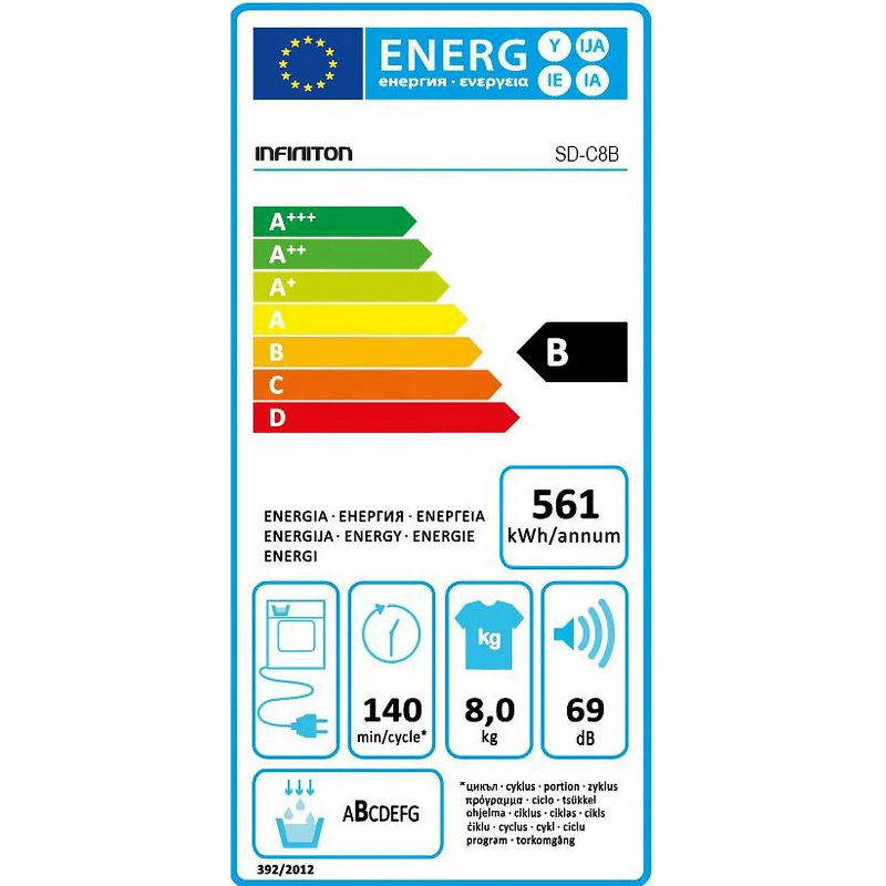 Secadora Infiniton SD-C8B tiene una capacidad de 8 kg y utiliza un sistema de condensación. Su funcionamiento se basa en el ciclo de secado mediante el calentamiento del aire, el cual es dirigido hacia el tambor. El aire caliente extrae la humedad de la ropa, y el condensador transforma el vapor en agua, que se recoge en un depósito. Este modelo cuenta con múltiples programas de secado, adaptados a diferentes tipos de tejidos. Su panel de control es digital, lo que permite seleccionar el ciclo deseado de manera sencilla. Tiene un sistema de filtrado que recoge las pelusas. Funciona con un voltaje estándar de 220-240V y su consumo energético es clasificado. El aparato incluye un manual de usuario que detalla las instrucciones de instalación y operación.